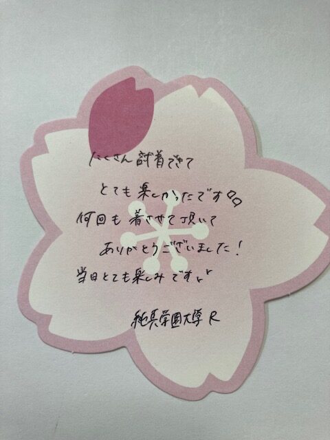 たくさん試着できてとても楽しかったです。何回も着させて頂いてありがとうございました!当日とても楽しみです。